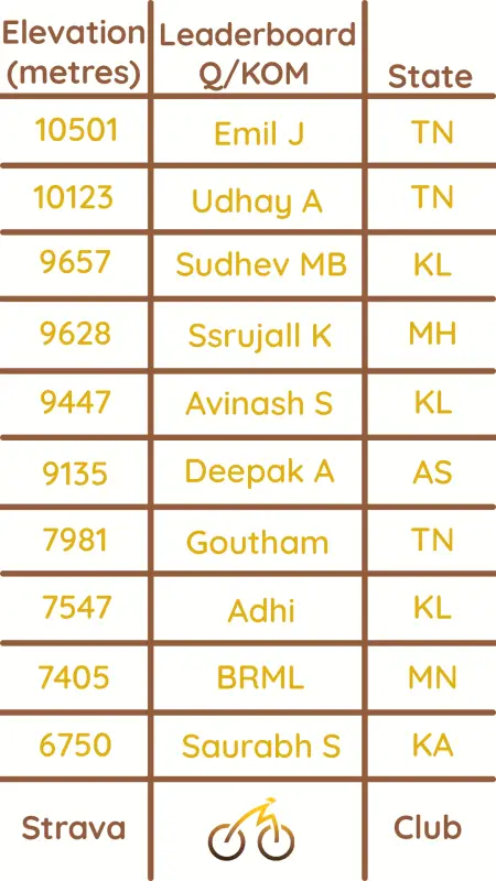 Climber of the week is Udhay Asokan from Tamil Nadu having climbed 8157 metres. He was KOM last week as well.