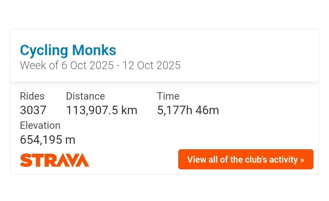 08/10/2025 at 09:23 #9503Week 279 update of the Cycling Monks Strava Group. Week ending 5th October 2025.
