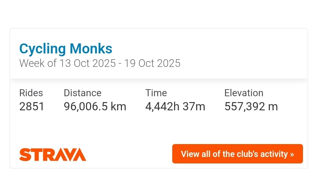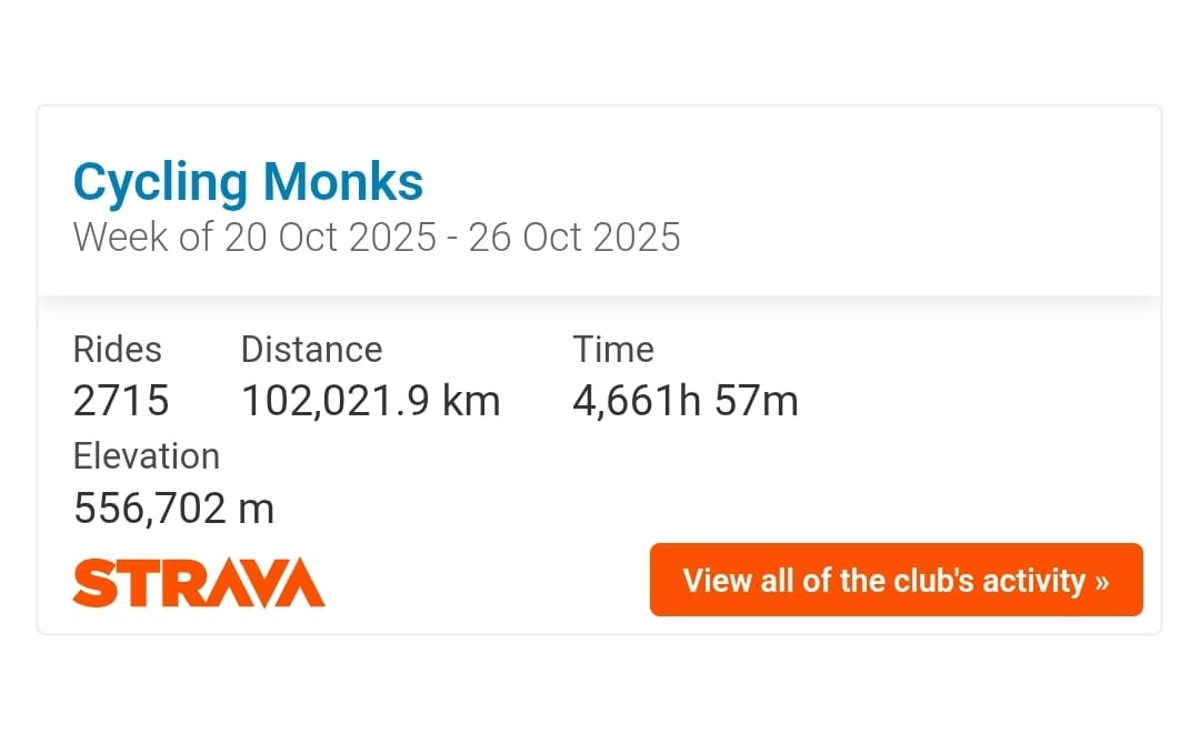 30/10/2025 at 11:52 #9548Week 282 update of the Cycling Monks Strava Group. Week ending 26th October 2025.