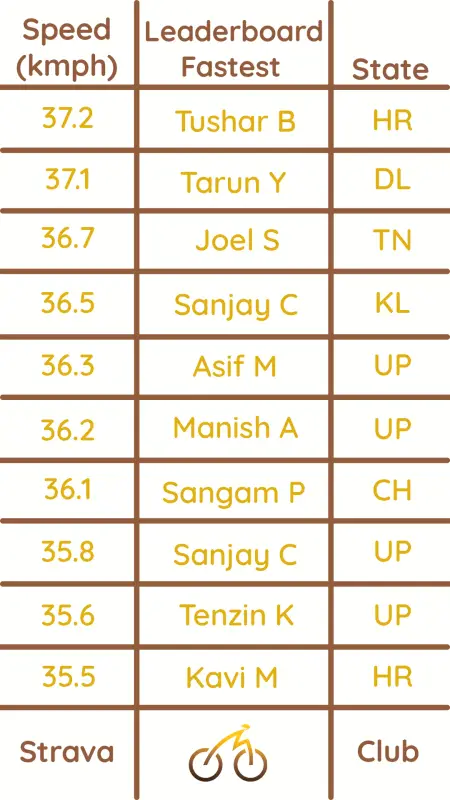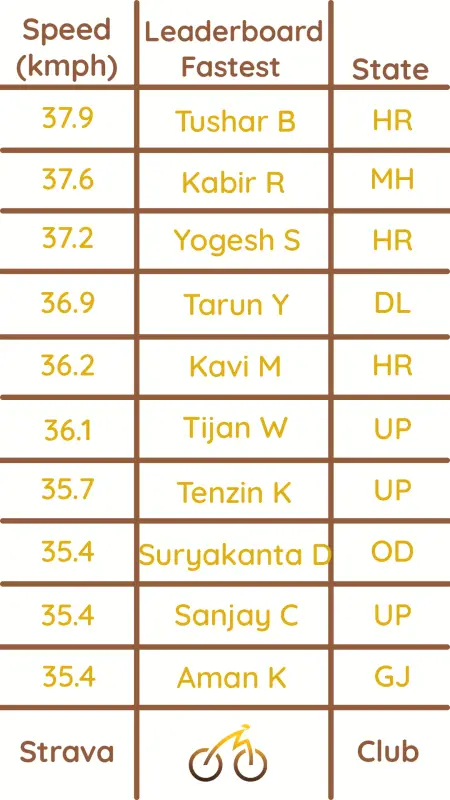 The top 81 have been riding at a seriously impressive pace.Fastest of the lot is Tushar Bakaya from Haryana who averaged an incredible 37.2 kmph over the week! He was second last week.
