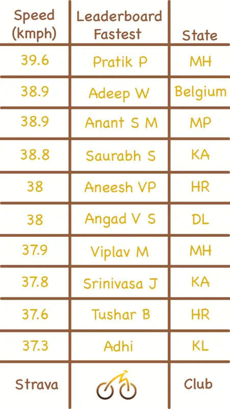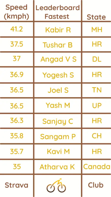 The top 81 have been riding at a seriously impressive pace.Fastest of the lot is Kabir Rachure from Maharashtra who averaged an incredible 41.2 kmph over the week! He was second last week.