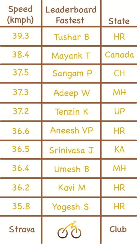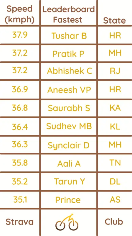 The top 72 have been riding at a seriously impressive pace.Fastest of the lot is Tushar Bakaya from Haryana who averaged an incredible 39.3 kmph over the week! He was first last week.