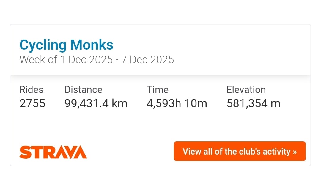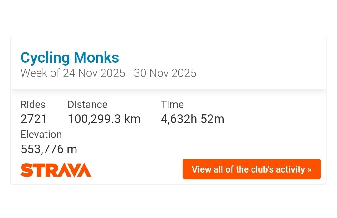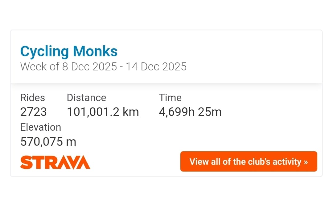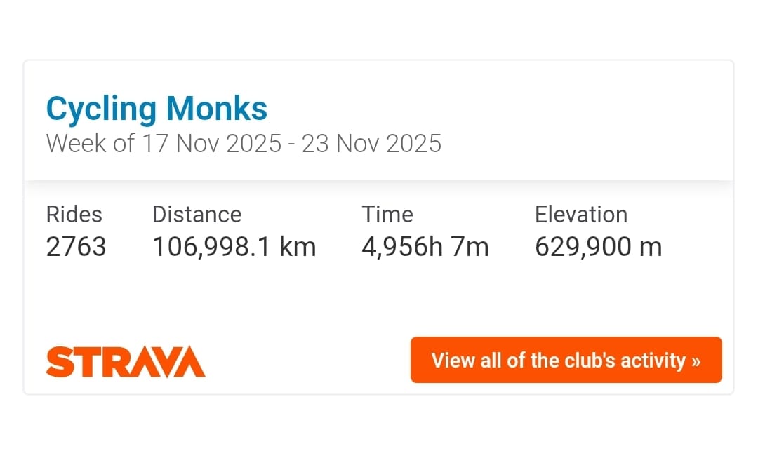 12/11/2025 at 09:06 #9577Week 284 update of the Cycling Monks Strava Group. Week ending 9th November 2025.
