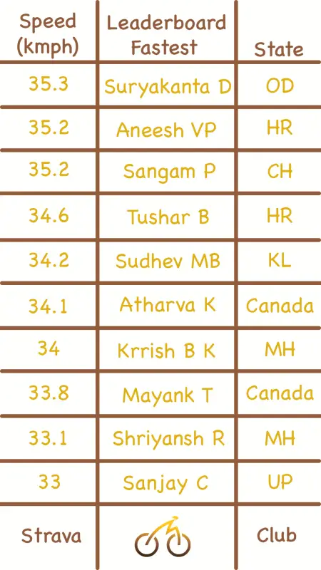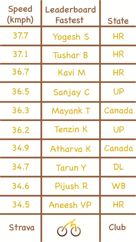 The top 86 have been riding at a seriously impressive pace.Fastest of the lot is Tushar Bakaya from Haryana who averaged an incredible 37.9 kmph over the week! He was second last week.
