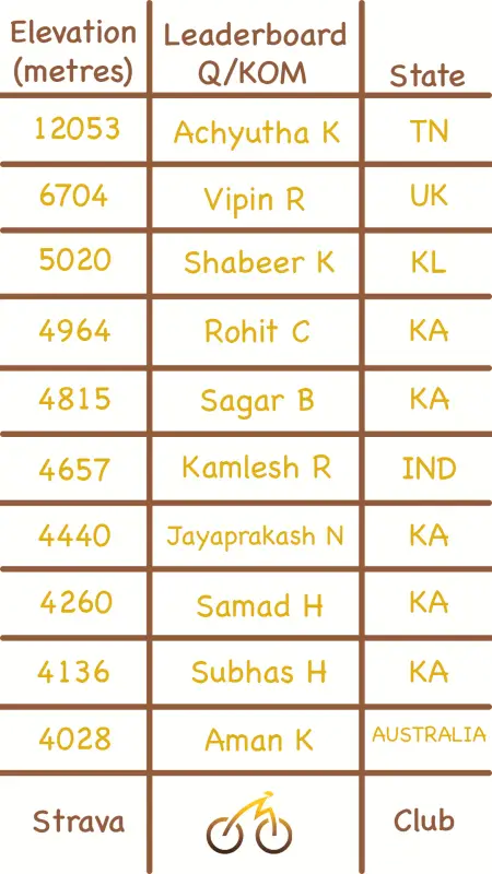 The climbing leaderboard went to the Western Ghats!