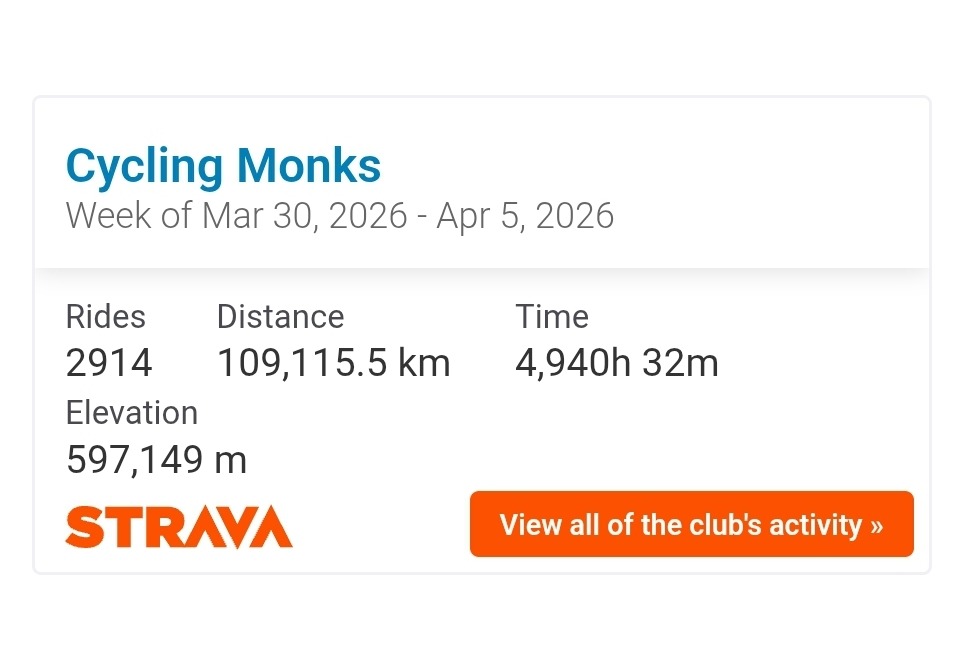 08/04/2026 at 09:01 in reply to: Cycling Monks Strava Group: Weekly Updates: Week 201 Onwards… #9960Week 305 update of the Cycling Monks Strava Group. Week ending 5th April 2026.